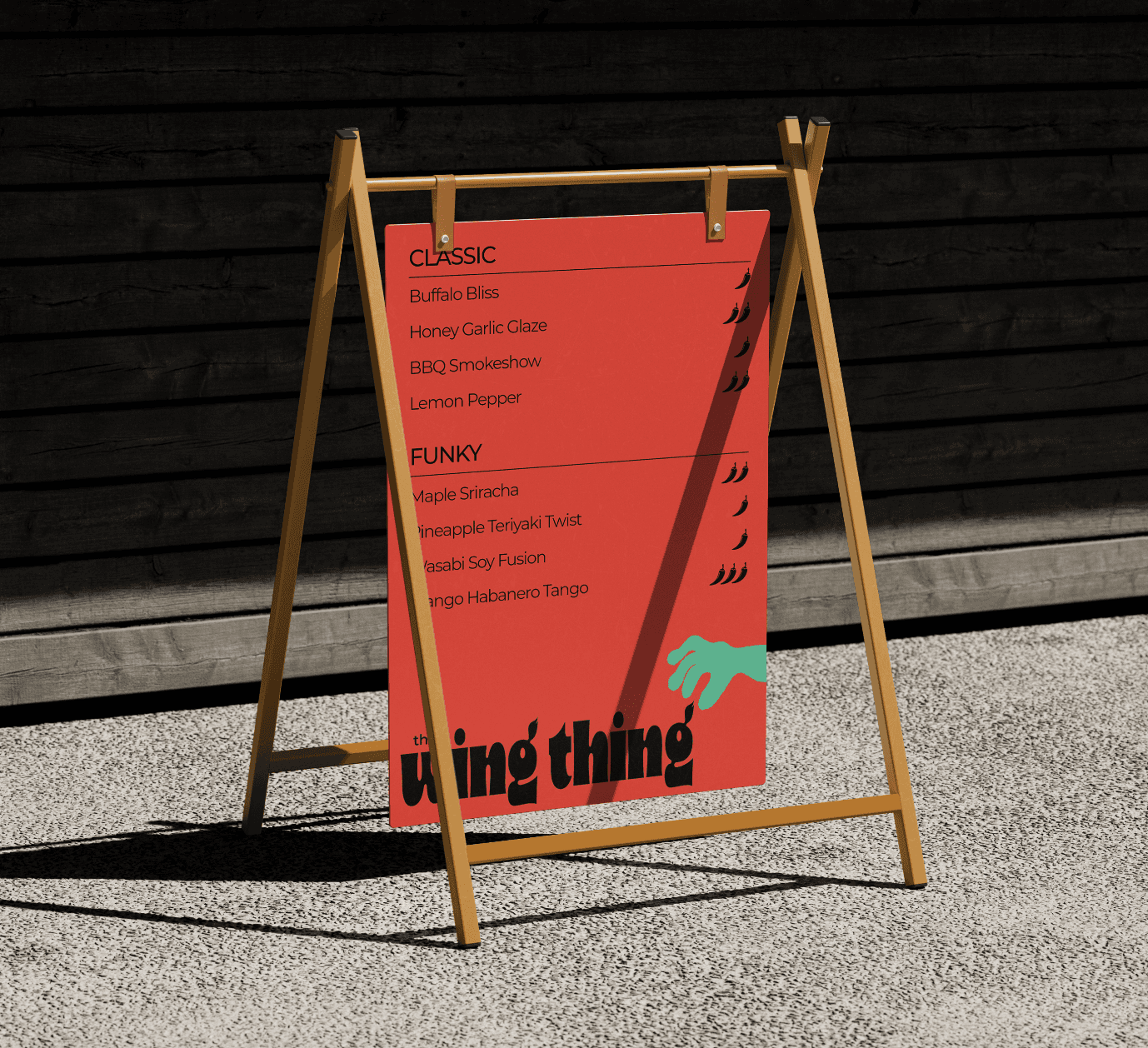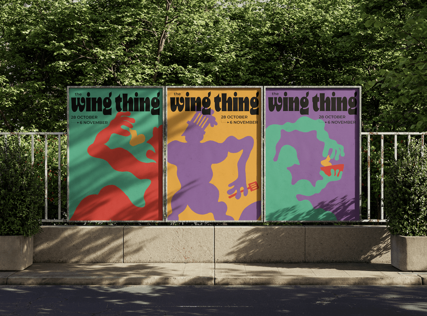 As designer for The Wing Thing, a student-run chicken wing festival, I crafted a bold and cheeky visual identity to match the event’s energy. The branding leaned into vibrant colours, playful illustrations, and expressive typography to celebrate the messy, joyful spirit of wing-eating. From posters to social media assets, every touchpoint was designed to invite people in and spark excitement. It was a project about flavour, fun, and creating a visual world as unforgettable as the wings.
